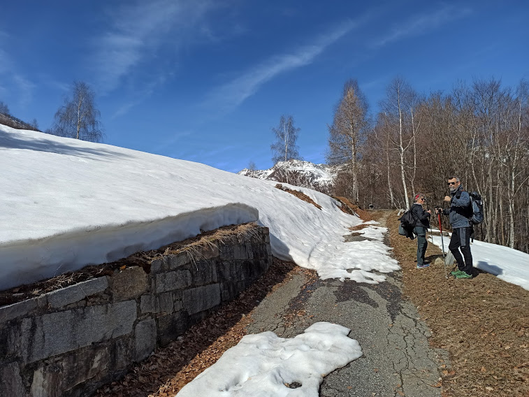 BOGNANCO-28-03-2021-- Sono guidato anche oggi dall’amico esperto, profondo conoscitore del territorio cui dedica parte del suo tempo libero pulendo sentieri. C’è anche una cara amica, grande camminatrice, che torna in compagnia dopo tempi difficili. Il virus continua a condizionarci e il campo base di questa lunga escursione sui monti fra Domodossola e Bognanco resta nel nostro comune.