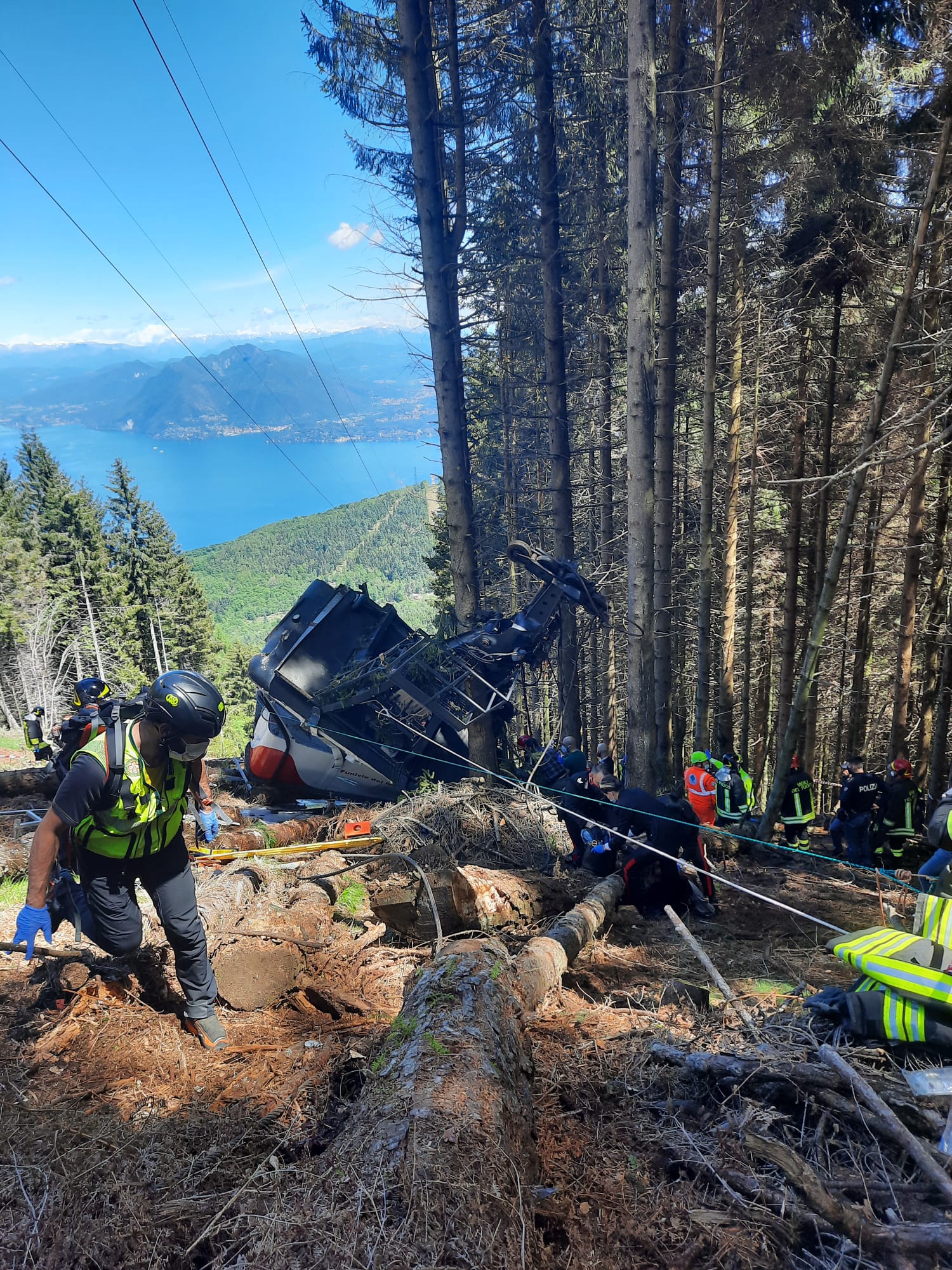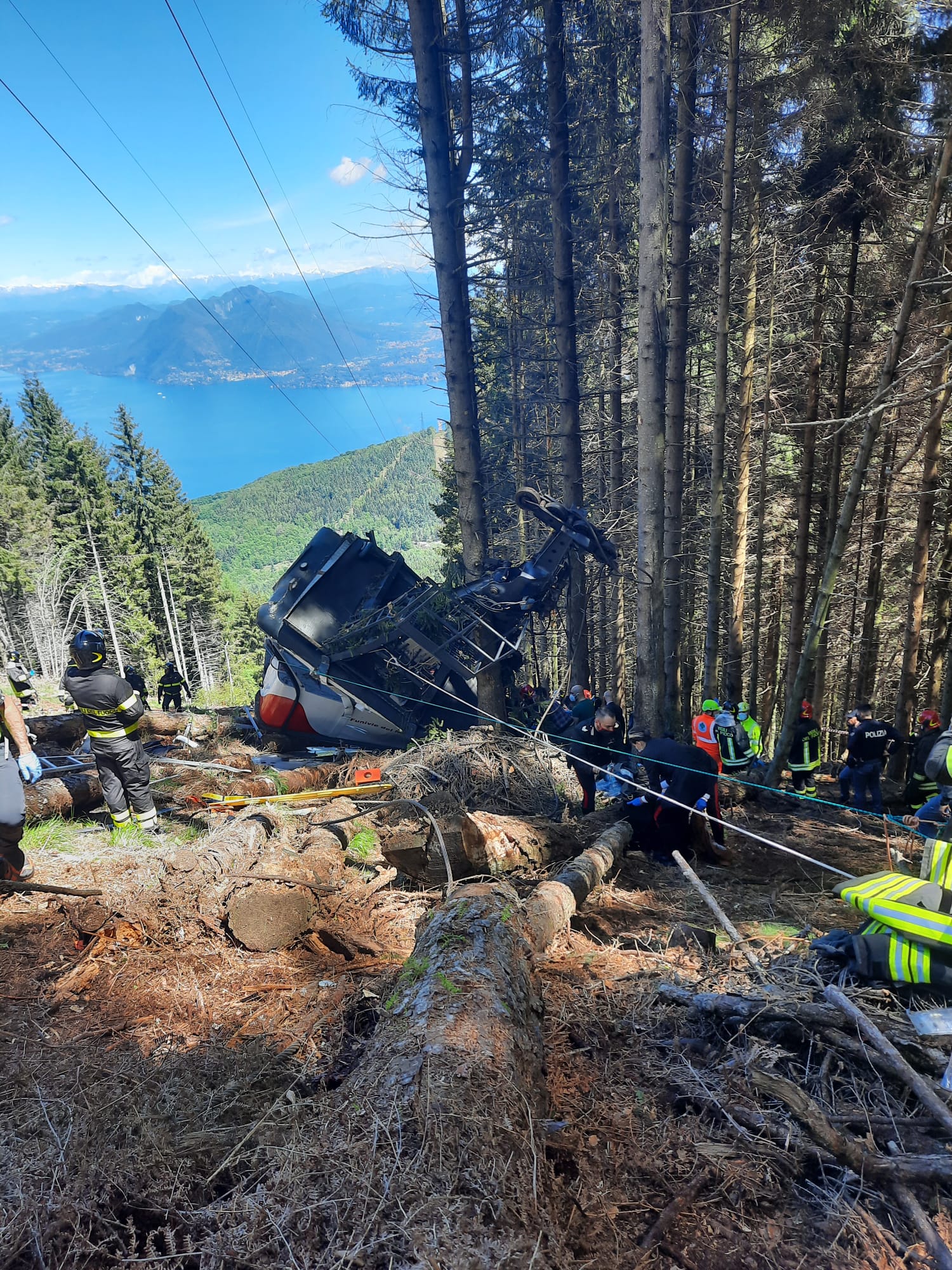 MOTTARONE- 23-05-2021-- Una tragedia infinita quella capitata stamane al Mottarone, i morti, secondo le sommarie informazioni giunte sinora, sarebbero saliti a 12, forse 13.