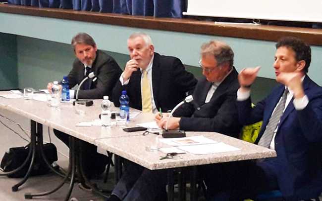 per il convegno “Quale futuro per commercio, turismo e servizi ad Arona". Chi si aspettava il nuovo progetto del lungolago e della la nuova isola pedonale è rimasto deluso. O forse lo sapeva e non è venuto. Maurizio Grifoni, presidente della Confcommercio Alto Piemonte, ha parlato per più di un’ora. Di Arona pero’ ben poco, se per elogiare a più riprese il sindaco Alberto Gusmeroli che “vuole fare sistema con Ascom”. Il progetto poi presentato a fine serata vara cinque misure alquanto vaghe. Nelle proposte la “riqualificazione e rigenerazione urbana” impostando il miglioramento dell’offerta delle luci pubbliche, puntando sulla qualificazione alberghiera” “la qualità del sistema commerciale”, “la mobilità sostenibile”, “la caratterizzazione eventi ed offerta culturale e sportiva. “ Grifoni ha aggiunto:” Arona è un magnete. Da nostri studi abbiamo appreso che Arona sarebbe molto appetibile per eventi musicali e per la sede di manifestazioni di sport estremi”. Ultima delle cinque proposte “Il piano di comunicazione e marketing territoriale”. Il piano, elaborato da Angelo Patrizio, architetto ed urbanista, ha lasciato indifferente la scarsa platea che invece ha chiesto novità concrete come nuovi parcheggi e la riduzione delle tariffe di sosta. Il sindaco Alberto Gusmeroli ha annunciato fatti concreti: ”Presto verrà varato il progetto per un parcheggio con un piano sopraelevato nell’area della Compagnia dei Quaranta, sarà il primo di questo tipo in città. Finanzieremo con 70.000 euro la sistemazione di un’area demaniale in Piazzale Moro. In tutto 80 posti in più. Stiamo trattando con la proprietà per ricavare un parcheggio in Cava Fogliotti, ma i posti auto ci sono e durante la settimana spesso sono liberi. Abbassare le tariffe ? No, sono ferme da anni e man mano che si esce dal centro ci sono parcheggi a prezzi minori o gratuiti.” Poi una proposta provocante:” Siete disposti a camminare di più lasciando i futuri 80 posti liberi per i vostri clienti facendo un abbonamento altrove o parcheggiando in Piazzale Moro? Piazzale Barberi, vicino al Corso Cavour, è sempre vuoto.” Intanto sono iniziati i lavori sul lungolago per rifare la pavimentazione del pergolato dei glicini : 60 i giorni previsti per completare i lavori. Resta nel mistero il piano per rifare il nuovo lungolago (900.000 euro) i cui lavori inizieranno in autunno. Il presidente Ascom Michele Caramella:” Appena sarà varato sarà presentato con un convegno ufficiale.” Per Carlo Giuliano, gioielliere, però un convegno utile:" Ci è servito a comprendere tante cose." Ovviamente esclusi dai temi gli esercenti di Arona che non fanno parte dell'area Corso Cavour - lungolago.