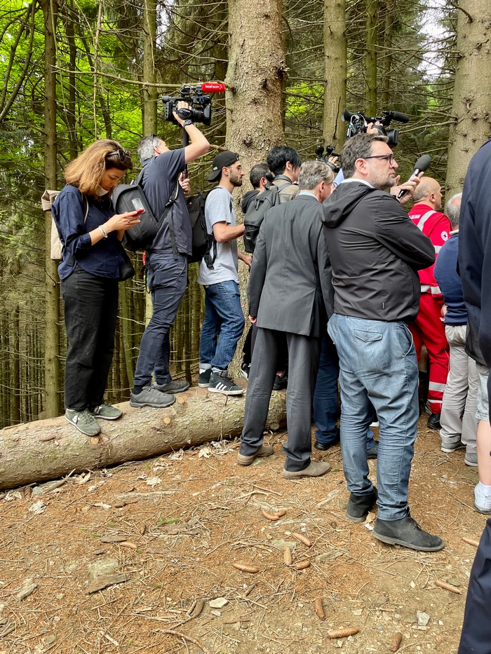 STRESA - 24-05-2022 -- Dolore, commozione, lacrime e rabbia. Doveva essere una cerimonia ristretta, per pochi. Istituzioni, soccorritori e parenti delle 14 vittime del disastro del Mottarone che, il 23 maggio del 2021, persero la vita nello schianto della cabina numero 3 della funivia, si sono ritrovati ieri mattina nel bosco della tragedia, dove l’Amministrazione stresiana ha collocato un monumento memoriale. La copiosa presenza di giornalisti ha immortalato l’evento, portando non solo le parole del sindaco Marcella Severino, del presidente della Provincia Alessandro Lana e del governatore del Piemonte Alberto Cirio, ma anche i sentimenti dei parenti presenti, il pianto di chi ha perso i propri cari, ma anche la rabbia di chi si sente abbandonato. Giustizia è la parola d’ordine invocata da tutti e ripresa nell’omelia che don Gianluca Villa ha tenuto più tardi nella piccola chiesa della Madonna della neve, dove è stata celebrata la messa a suffragio.