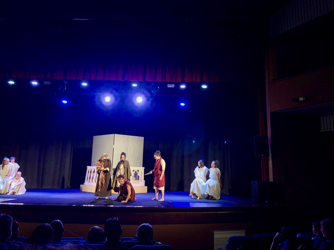 Successivamente sono saliti sul palco “i più esperti”, portando in scena il Miles Gloriosus di Plauto: testo originale di partenza con contaminazioni della commedia latina antica e la tradizione della Commedia dell’Arte in una comicità dalle gestualità accentuate e personaggi tipizzati.