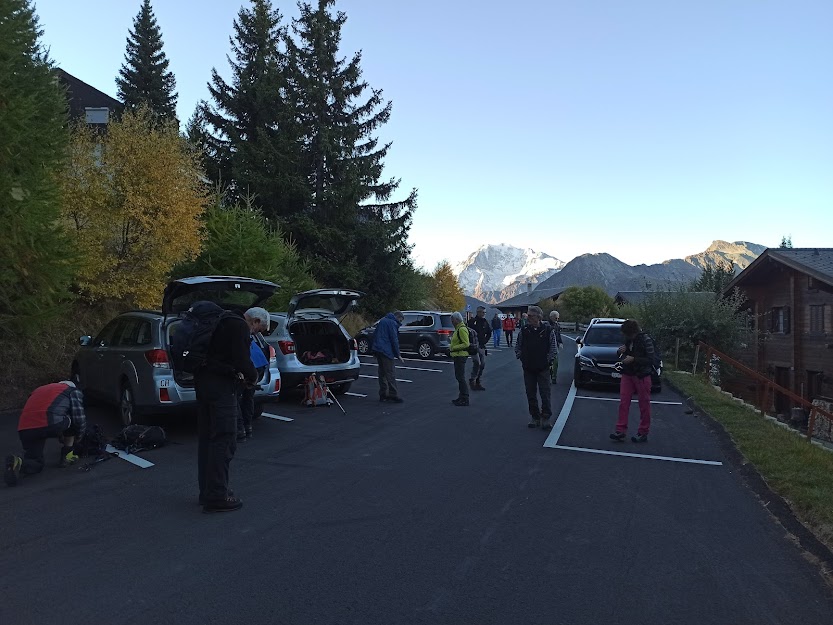Prima dell’alba ci troviamo alla stazione di Domodossola con zaini e racchette, sotto gli sguardi perplessi di chi le levatacce le fa quotidianamente per andare al lavoro. Anche oggi la squadra tipo è costituita da badante e medico di turno che si occupano di quattro anziani, uno dei quali, oltre al mal d’auto, soffre anche il mal di treno. Se non fosse per l’età avanzata, dovremmo pensare in futuro di raggiungere i campi-base in bicicletta, come spesso facevano i nostri vecchi.