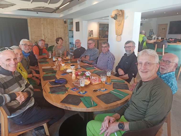 Passando da Saflischmatte e lungo il percorso delle piste da sci, rientriamo a Rosswald, chiudendo l’anello alla chiesetta. In pochi minuti siamo al parcheggio (poco più di un’ora e mezza dal Fülhorn). Nel ristorante vicino alla stazione di valle dell’ovovia che da Ried sale a Rosswald consumiamo quella che per gli amici svizzeri, non per noi, è una modesta merenda. Sul treno che ci riporta in patria studiamo già un percorso adatto all’incontro italo – svizzero del 2023. Siamo ottimisti.