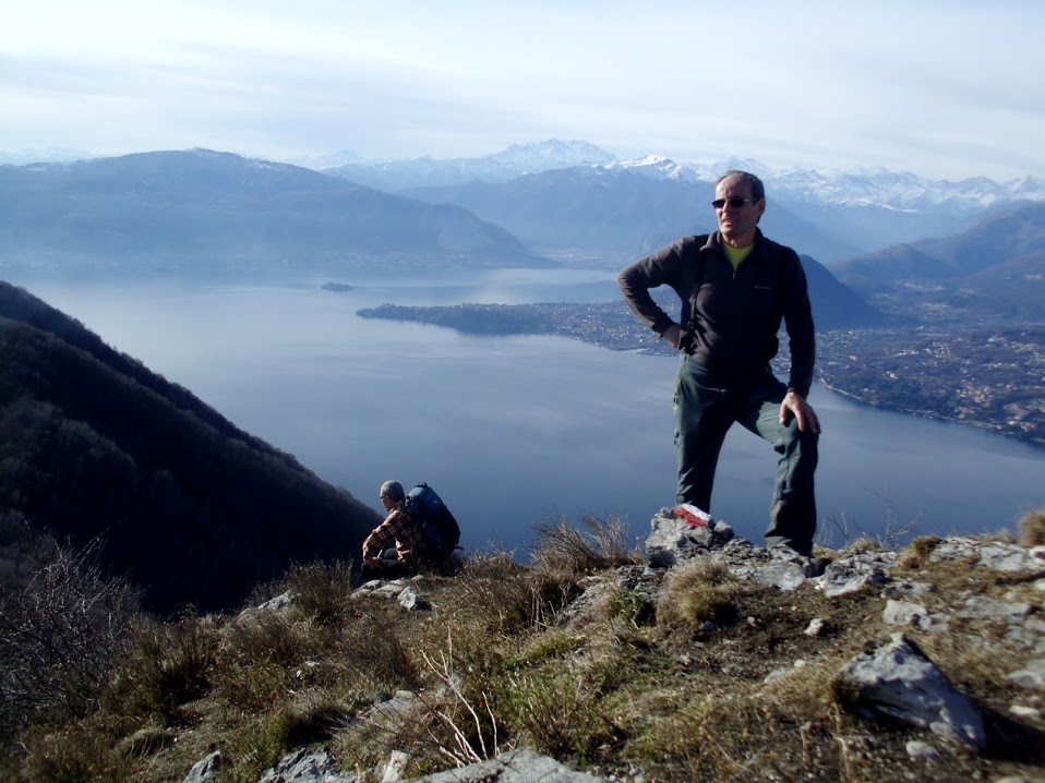 Con saliscendi si percorre il filo di cresta fra Lago Maggiore e Valcuvia, su neve ben portante ed estasiati da panorami stupendi a trecentosessanta gradi, raggiungendo l'ultimo rilievo dei Pizzoni, quota 1050. Una croce d'acciaio con libro di vetta incorporato segna l'inizio della ripida discesa.