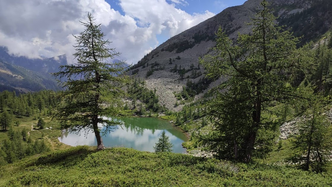 Pausa pranzo molto tranquilla dato che la minaccia di pioggia non c’è più, ci resta poco da camminare e qui siamo in Paradiso. Seguiamo le evoluzioni di un airone cenerino che si apposta su un alto larice per studiare da lontano la fauna ittica del lago. Seguendo il sentiero D00, che nell’ultimo breve tratto si trasforma in strada sterrata, arriviamo a San Bernardo in poco più di un’ora.