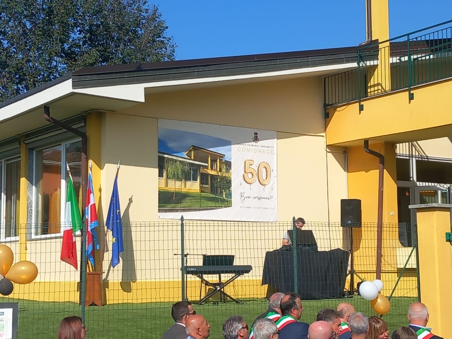 COMIGNAGO –01-10-2023 -- Una grande festa per i 50 anni della scuola "Ungaretti" DI Comignago. E' quella svoltasi sabato 30 settembre, presenti numerosi amministratori del territorio. Il sindaco Daniele Potenza, ha sottolineato i lavori effettuati negli anni:” Gli ultimi fatti sono quelli per la messa in sicurezza ed efficientamento energetico del polo scolastico, con l’isolamento della copertura e la sostituzione delle caldaie per 105.358 euro ottenuti dal ministero. Con nostri fondi abbiamo posizionato prati sintetici, un materassino antitrauma e la fibra ottica per un collegamento internet più rapido. Sono lontani i tempi in cui questa scuola era a rischio chiusura (anni ’90). Ora vengono bimbi anche da altri paesi. Abbiamo un pre scuola quasi gratuito con i nostri volontari comunali. Una scuola a misura di bimbo in quanto dai 6 mesi agli 11 anni si può frequentarla avendo la continuità nello stesso polo scolastico (nido-infanzia-media). Comignago deve essere ricordata per queste eccellenze, non solo perché qui anni fa si sono sposati Belen e De Martino… “.