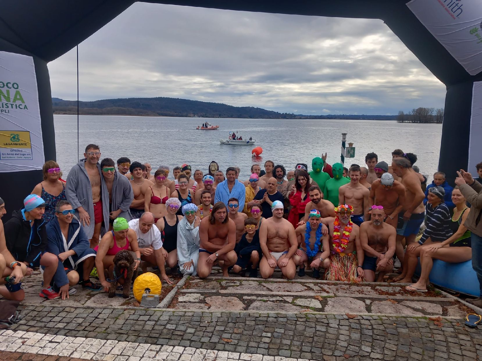 ARONA - 11-02-2024 -- Sono stati in 65 a sfidare il freddo delle acque del lago, in occasione della 46^ edizione del Cimento Invernale, di Arona. Nove i gradi dell'aria, una temperatura mite rispetto al periodo, sette quelli in acqua