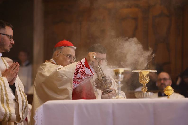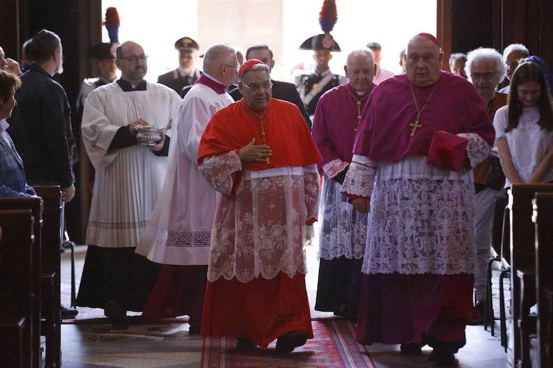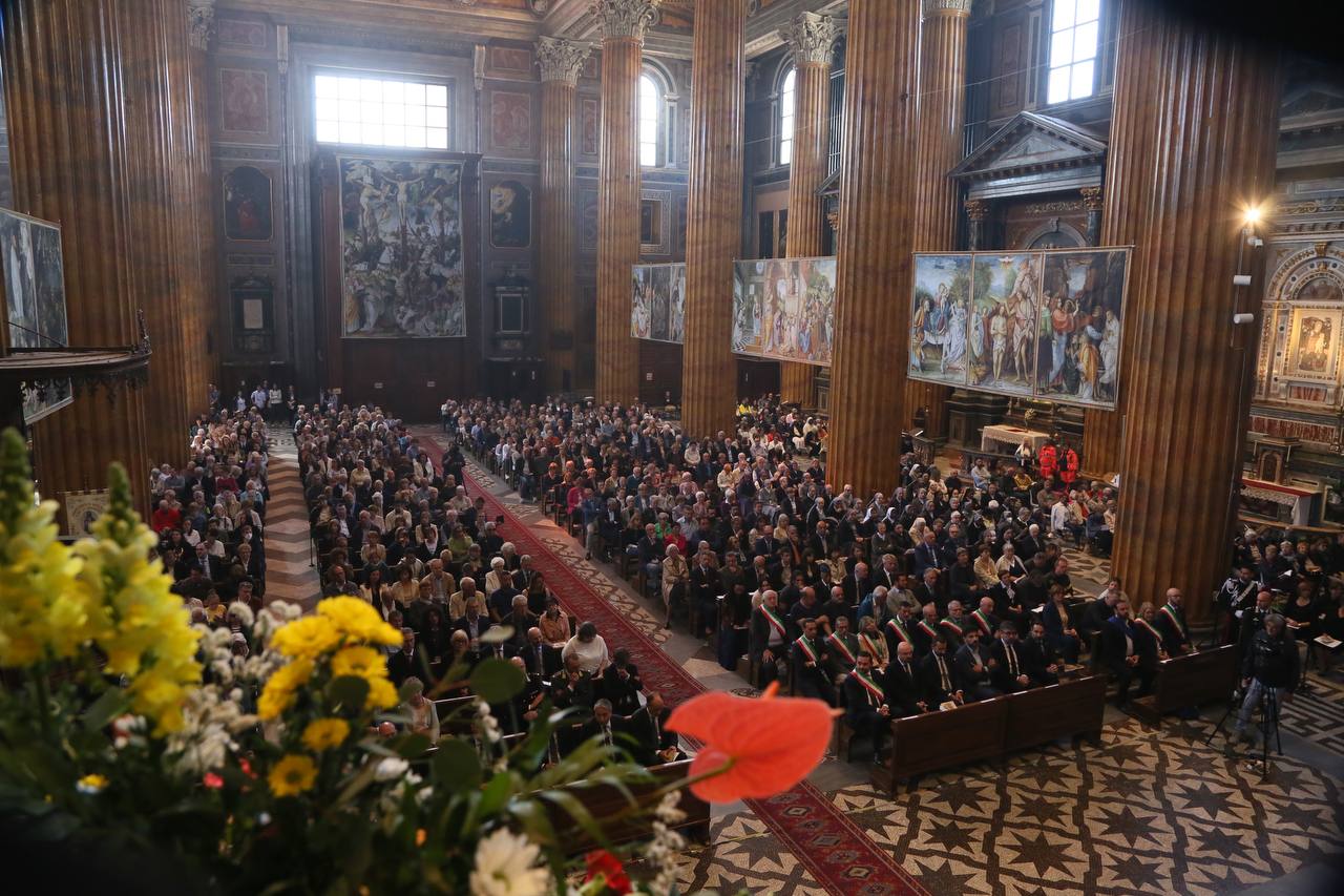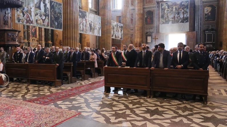 Tanti fedeli anche in Basilica di San Gaudenzio, dove è stato allestito un apposito schermo per la trasmissione in streaming della cerimonia per coloro che non sono riusciti ad aggiudicarsi un pass per la Cattedrale.