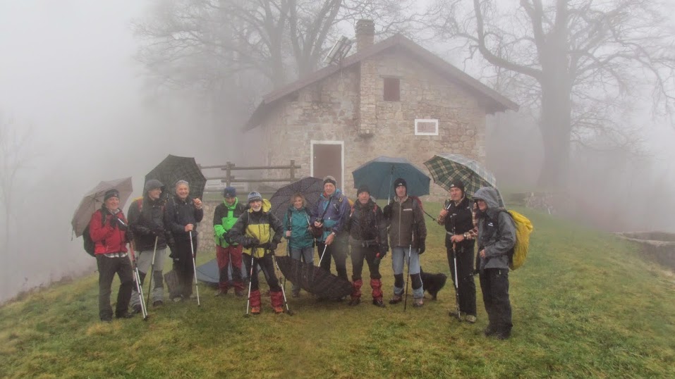Consci da giorni della pessima giornata che ci aspetta, noi "del giovedì" prenotiamo per tempo un pasto caldo al riparo dalla pioggia e scegliamo i larghi sentieri e le strade che conducono in vetta al Mottarone.