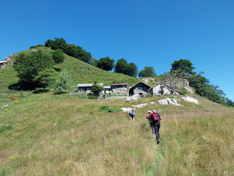 CIMAMULERA - 28-7-2024 -- Al Pizzo Castello eravamo già saliti più volte, ma scendendo sempre lungo percorsi diversi da quelli di salita. Oggi la mia seppur scarsa autorità, abbinata alla pazienza degli amici e alla valida scusa degli effetti devastanti di un mese di inattività escursionistica, impone il ritorno più breve possibile, cioè dal percorso di salita.