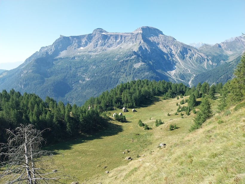 Un altro giovedì in Paradiso, nonostante i nostri peccati. A Corte Verde una freccia rossa su un sasso e la scritta “Nava” ci ingannano. Teniamo la destra seguendo un sentierino che, più in alto, si perde in uno splendido e ripido bosco di larici. Dopo rapide consultazioni prevale la saggezza della nostra età media elevata (escluse naturalmente le badanti) e torniamo a Corte Verde. Abbiamo perso quasi un’ora, ma in questa meravigliosa giornata va bene anche un approfondimento delle nostre conoscenze di un territorio nuovo e di grande bellezza.