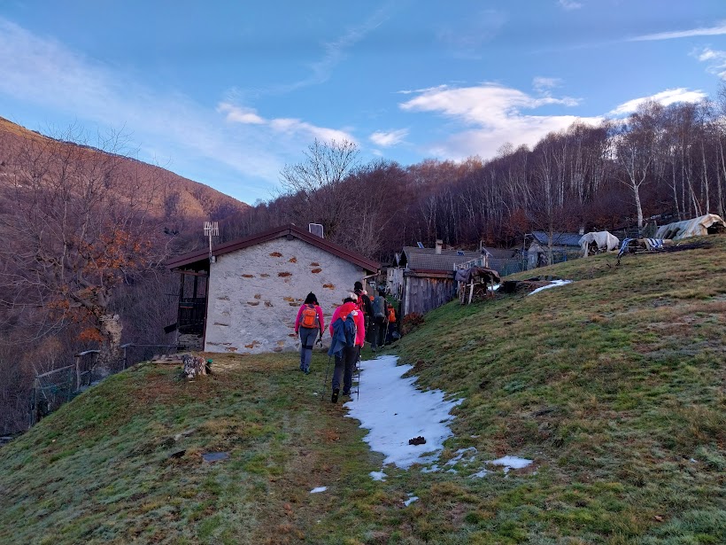 AURANO- 08-12-2024-- Il compleanno di una cara amica, nonché forte escursionista e affidabile badante, non c’impedisce le consuete ore di cammino, ma i festeggiamenti e la bella compagnia oggi sono la priorità. L’Alpe Calpera è un angolo di paradiso immerso nelle splendide faggete fra Piancavallo e Il Colle, un po’ più in basso. Ne approfittiamo per salire al Monte Morissolino, 1410, modesta meta poco conosciuta, almeno da noi ossolani.