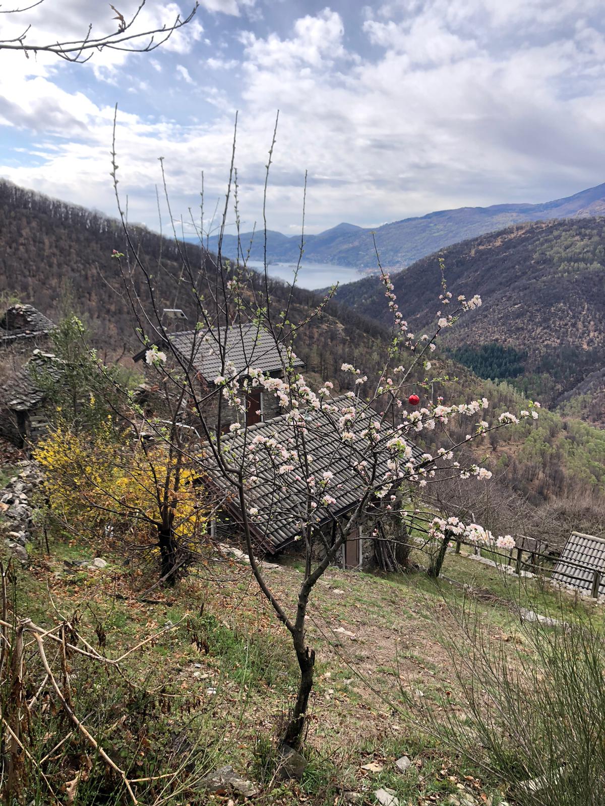 Splendida giornata, il vento è rimasto in Ossola. Tredici ragazzi, di età media sui 65 anni, due gentili signore ben più giovani e Nena, una signorina Labrador, s'incontrano di primissimo mattino a Cossogno. Subito dopo il ponte ad ingresso paese s'imbocca una stradina sulla destra e si posteggia in prossimità dell'inizio del sentiero del chilometro verticale, quota 400. Chi volesse ridurre il dislivello può, forse, salire in auto fino alla località Cresta.