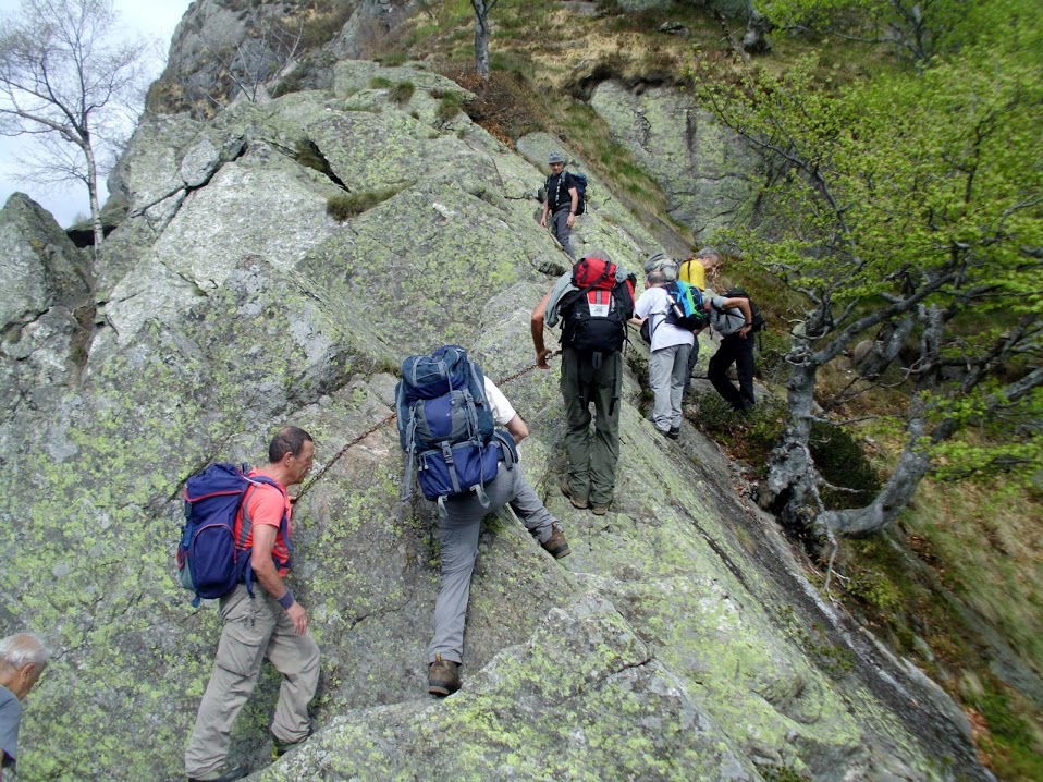 La primavera avanzata, con temperature moderate e vegetazione non ancora “esplosa”, consente un'escursione non amata da chi detesta vuoto ed esposizione, sia pure su sentieri ben segnati ed attrezzati. Per l'occasione sono stati convocati alcuni esperti, sempre pronti a porgere una mano o una corda agli amici in difficoltà.