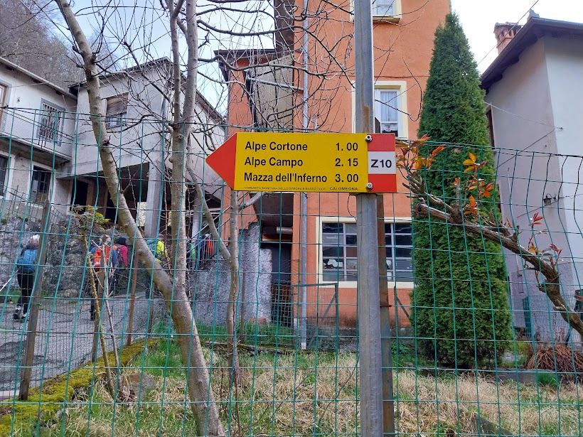Molto tempo dopo l’alba, nonostante l’ora legale, parcheggiamo comodamente a Forno, 910. Attraversiamo il paese, seguendo le indicazioni, ed iniziamo subito a salire diretti a nord. Siamo sul sentiero Z10 del GGT (Grata Gamul Trekking), che percorre tutta la valle e raggiunge molte cime, sul quale mi informerò. A quota 1150 circa troviamo una piccola fune d’acciaio che sporge dal terreno e attraversa il sentiero in modo “poco accorto”. Sembra una trappola per escursionisti, soprattutto in discesa. Attenzione! Certo che l’homo sapiens non sempre sa quello che fa! In tre quarti d’ora raggiungiamo l’Alpe Cortone, 1272, e qui sostiamo. Sta facendo il passo il decano con voglia di mare ed è un passo di tutto rispetto per i suoi …anta.