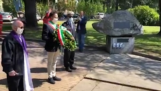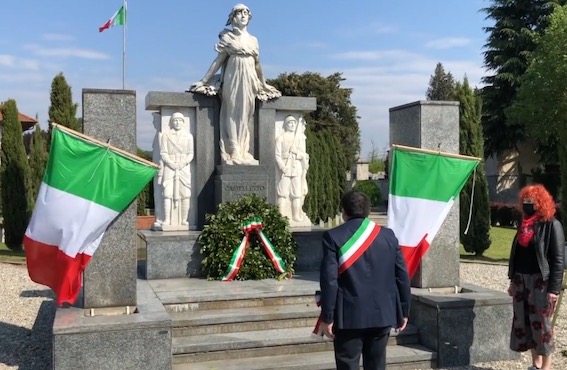 di Novara, Alessandro Canelli, si è recato al cortile del Broletto per la deposizione della corona al monumento ai Caduti in occasione della Festa della Liberazione. Presente, insieme al primo cittadino, la presidente provinciale di Anpi Michela Cella.