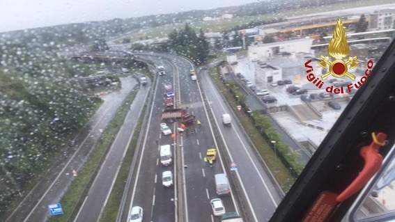 oggi pomeriggio, lunedì 11 maggio, ore 16.30 sulla superstrada SS 336 “della Malpensa” tratto T1 - T2. Per cause ancora da accertare, il conducente di un mezzo pesante ha perso il controllo del veicolo sfondando il new jersey centrale alla carreggiata invadendo la corsia opposta. Sul posto stanno intervenendo i vigili del fuoco del distaccamento di Busto/Gallarate con un’autopompa e un fuoristrada, un autogru dalla sede di Varese e gli specialisti del reparto volo Lombardia a bordo del “Drago 82”. Gli operatori hanno messo in sicurezza il veicolo e stanno collaborando col personale sanitario. Sono in corso le operazioni di rimozione del mezzo pesante.