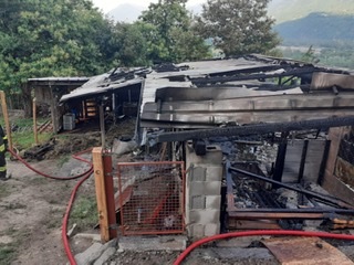 il cane pastore, razza Australian Shepherd sopravvissuto al rogo della sua stalla avvenuto oggi pomeriggio a Pallanzeno. Il cane, insieme ad altri animali, è riuscito a scampare al rogo rimanendo però ustionato. E' stato trasportato d' urgenza presso la Clinica veterinaria Città di Domodossola, e prontamente stabilizzato dal dott. Matteo Brambilla e dal dott. Federico Cavalli. L’animale si trova tuttora ricoverato in sedazione farmacologica, è in prognosi riservata con ustioni che hanno coinvolto soprattutto il muso e la schiena.