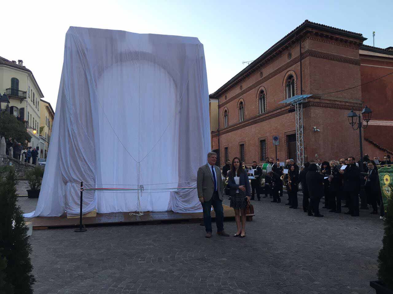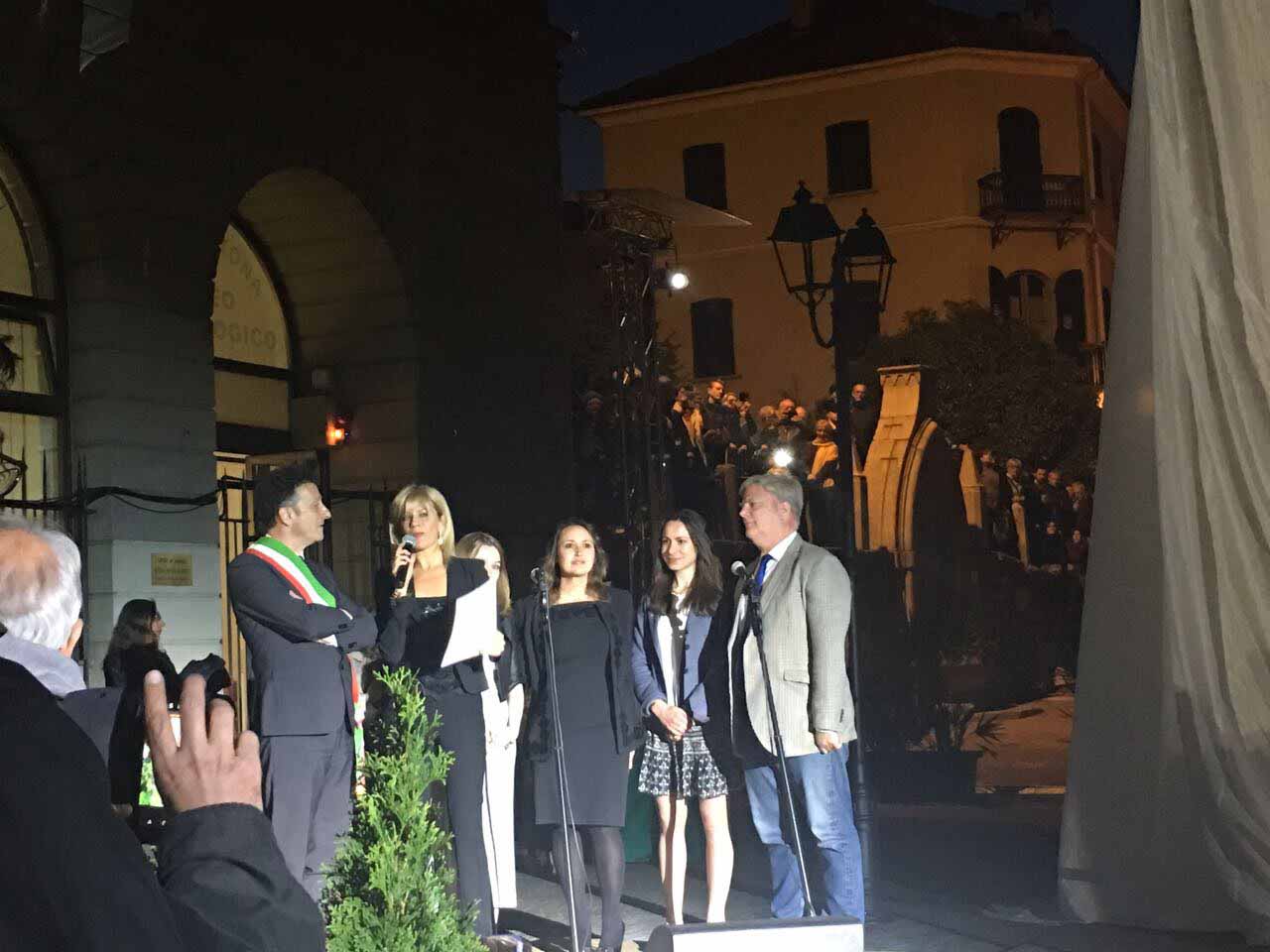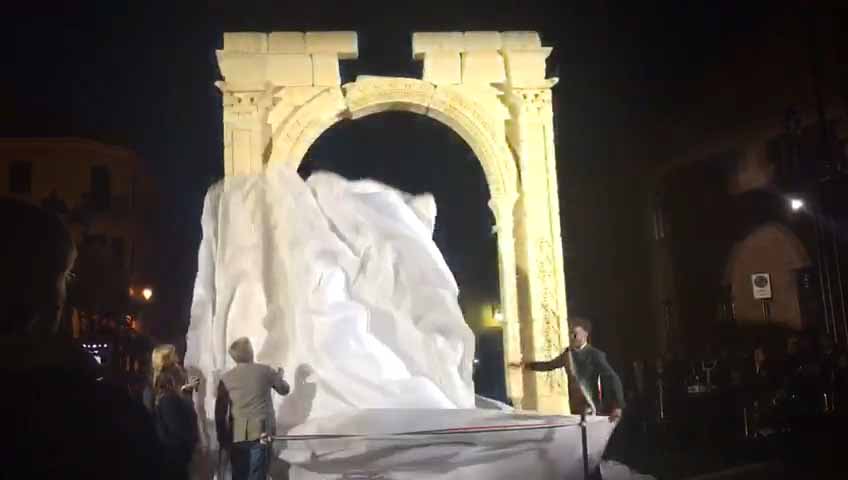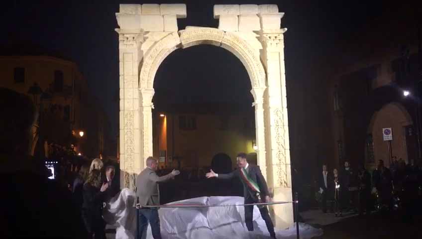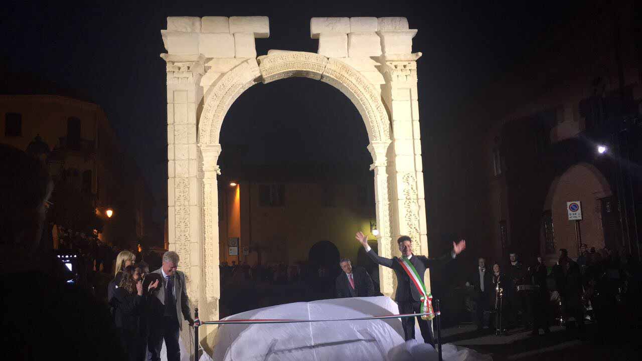 ARONA- 30-04-2017- Tanta emozione, e qualche lacrima di commozione in ricordo del sacrificio di Khaled al-Asaad, l'archeologo trucidato dall'Isis perchè rimasto per preservare il sito di Palmira, ad Arona sabato sera per l'applauditissima inaugurazione della ricostruzione tridimensionale dell'Arco di Palmira, che approda sul lago Maggiore dopo le prestigiose vetrine di New York, Londra, Dubai e Firenze, dove resterà per tre mesi. Sino alla fine di luglio ogni sera ci sarà uno spettacolo di luci e suoni: “E' un'iniziativa che nasce dell'intitolazione del nostro museo cittadino a Khaled al-Asaad- spiega il sindaco di Arona Alberto Gusmeroli- è stato un archeologo incredibile, ha dedicato la vita per preservare Palmira, rimanendo in città con l'invasione dell'Isis, rimanendo trucidato. Sono mesi che lavoriamo per questo momento importante, non solo per noi di Arona, ma per tutto il territorio. Vediamo come la civiltà, una cultura millenaria è più forte della barbarie. Avremo tutte le sere uno spettacolo musicale e di luci che abbraccerà la piazza e l'arco, avremo incontri e momenti di riflessioni, l'apertura del museo e la chiave di volta di Palmira. Tanti motivi per avvicinarsi ad un mondo importantissimo come quello della nostra storia, ma anche ad Arona ed al nostro museo. Un gemellaggio fra Arona e Palmira su cui abbiamo creduto guardando anche al futuro degli studi archelogici di Arona, oggi abbiamo annunciato che Politecnico di Milano ed Università Cattolica faranno con noi un progetto, mandando gli studenti a studiare la parte più alta della Rocca per fare sondaggi ed una campagna di scavi”.