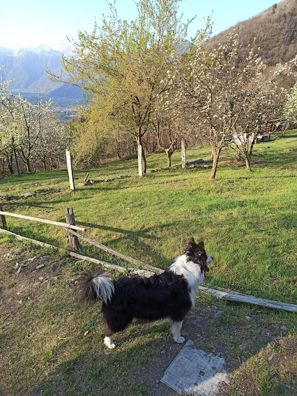 Un’altra giornata stupenda e troppo calda per essere a fine marzo, con la pandemia che continua a limitarci, mi vede, con la vivace compagnia di Asia, posteggiare in prossimità del cimitero di Crosiggia, 402, frazione alta di Domodossola. Il programma, piuttosto ambizioso, è di percorrere in lungo e in largo il versante orientale della montagna di Domodossola e Villadossola, il Moncucco. Lungo il sentiero più amato e frequentato dai domesi, con brevi strappi e tratti pianeggianti, arriviamo all’Oratorio di Sant’Antonio e alla borgata di Anzuno, 551. Attraversiamo il borgo e il Rio d’Anzuno in località Molini, 566, e, in breve, siamo alla Cappella Dell’Oro, 602. Qui le persone normali proseguono, quasi in piano, verso Tappia.