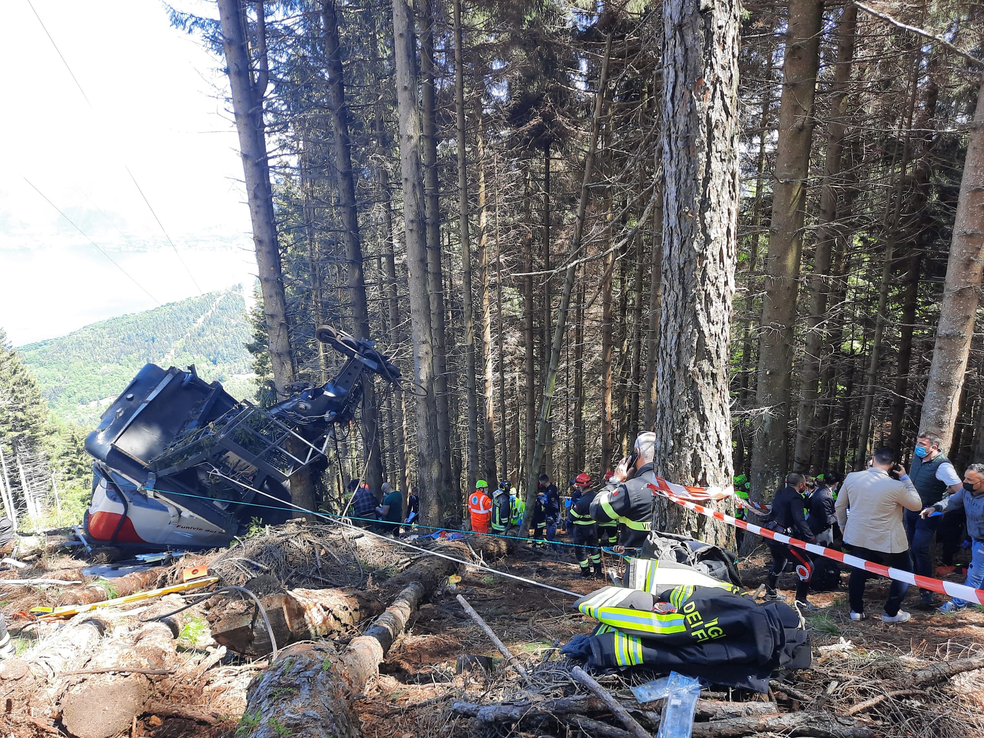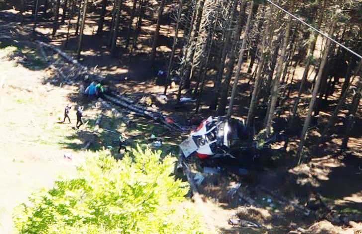 MOTTARONE- 23-05-2021-- Una tragedia infinita quella capitata stamane al Mottarone, i morti, secondo le sommarie informazioni giunte sinora, sarebbero saliti a 12, forse 13.