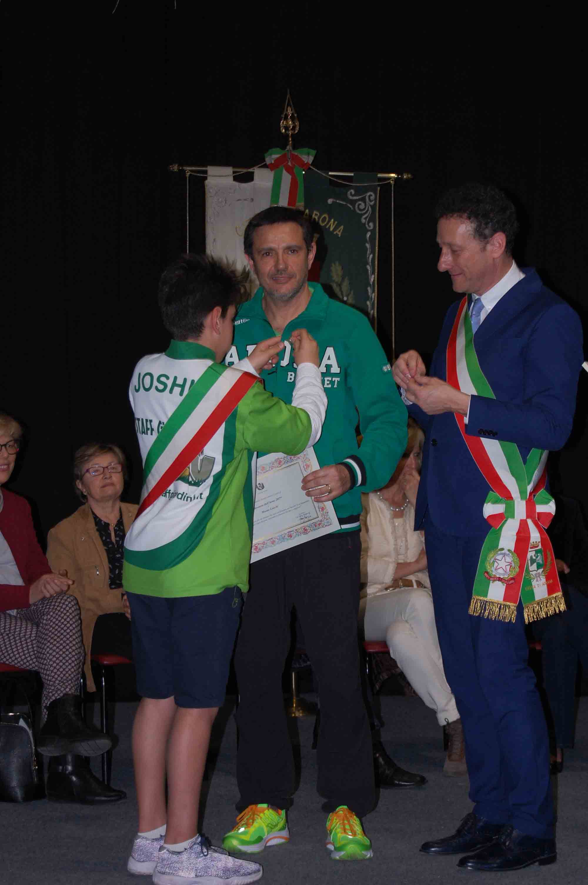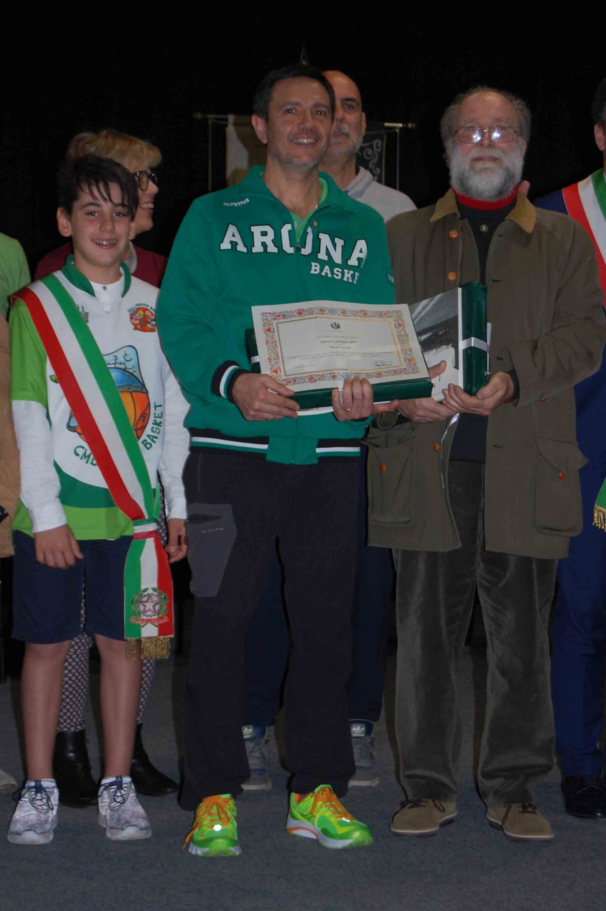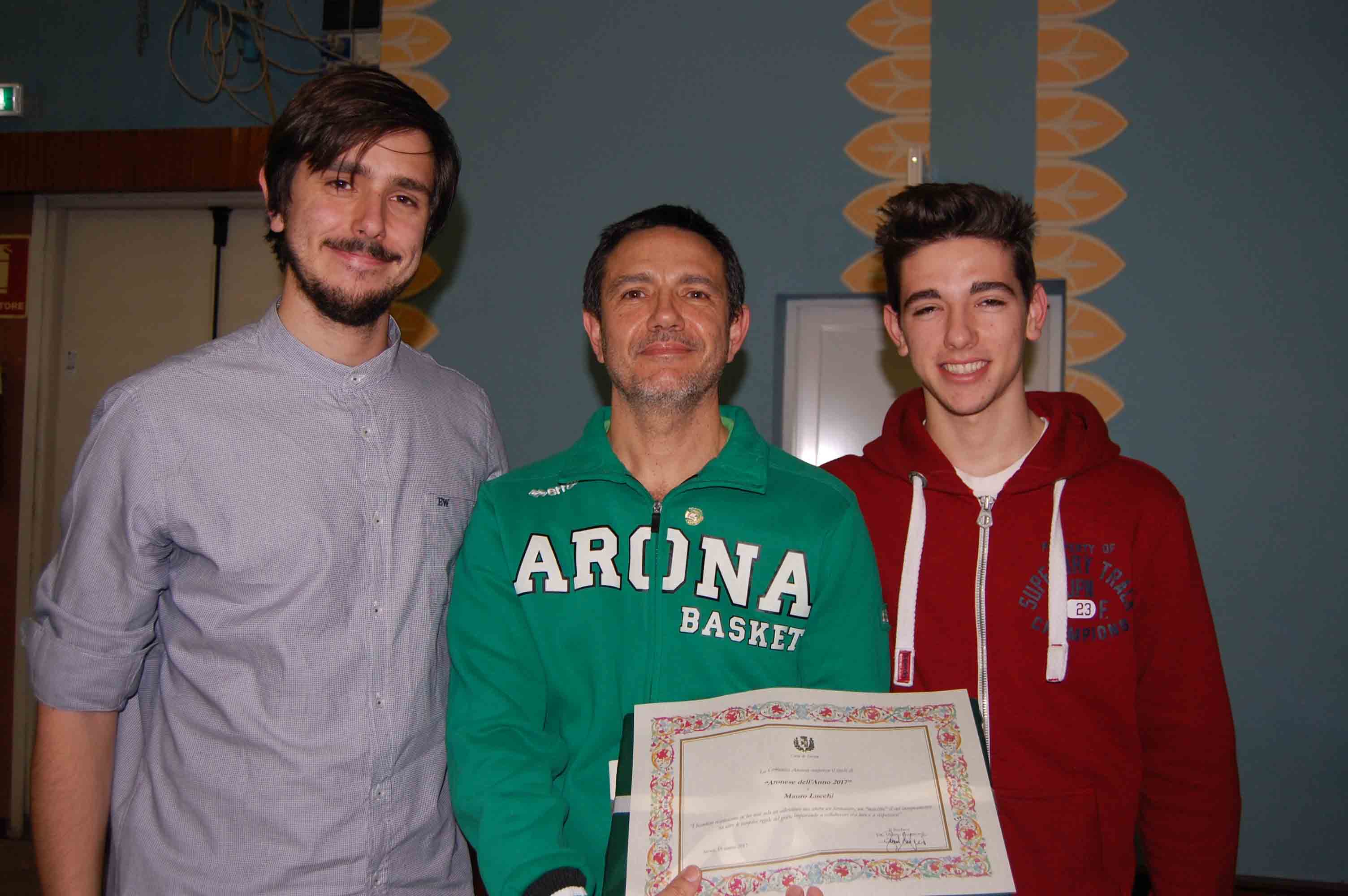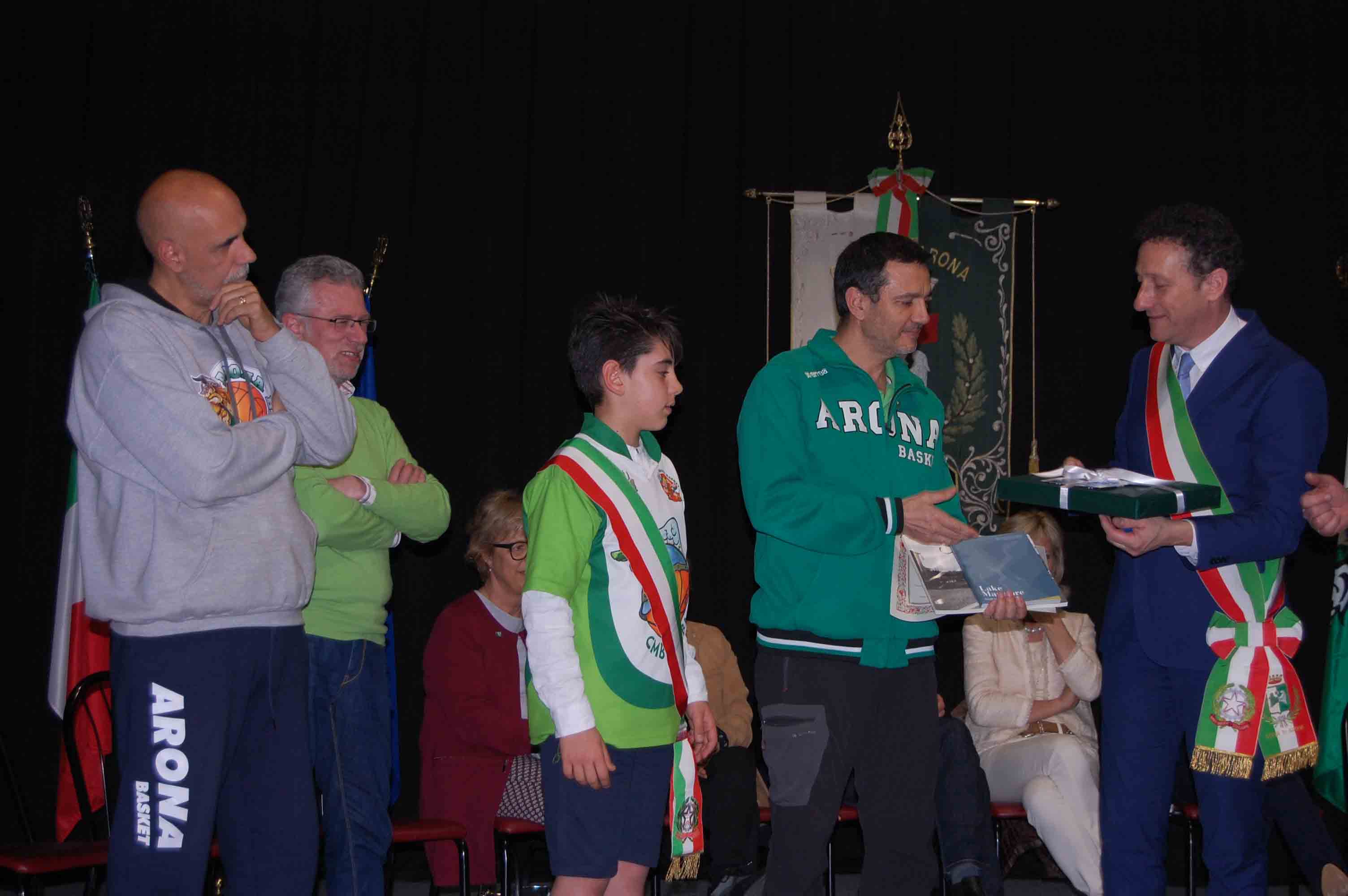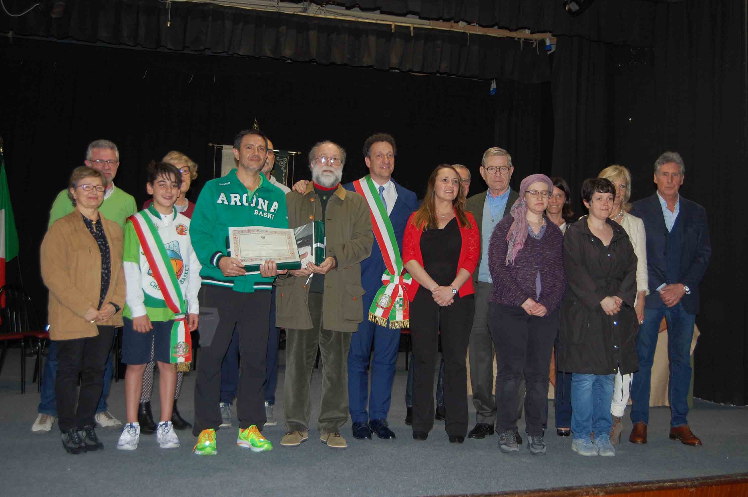 Il Sindaco Alberto Gusmeroli, insieme al baby sindaco Joshua Zani in rappresentanza del CCRR, sostenuto dalla Commissione giudicatrice ha conferito il premio Aronese dell’Anno a Mauro Lucchi, allenatore dell’Arona Basket al quale è stato riconosciuto il pregio di saper educare i ragazzi non solo allo sport ma anche alla vita. “I bambini riconoscono in lui non solo un allenatore ma anche un formatore, un “maestro” il cui insegnamento va oltre le semplici regole del gioco, imparando a collaborare tra loro e a rispettarsi” questa la motivazione che ha accompagnato la sua elezione. Lucchi, che ha dedicato il premio a tutti i ragazzi che allena e che ha allenato, ha così commentato: «Continuerò nel mio impegno cercando di offrire ai ragazzi non solo le conoscenze e le abilità sportive che potranno fare di loro dei bravi atleti ma anche dando loro l’occasione di imparare a vivere insieme agli altri momenti importanti di condivisione e vita». E’ stato parimenti premiato Nicola Pankoff, maestro aronese di fama internazionale “pittore, compositore e musicista che, si distingue per la dedizione alla Città, di cui è portavoce nel mondo” come si legge sulla motivazione redatta dalla Commissione giudicatrice. L’artista, impegnato proprio in questi giorni in una mostra personale alla Biblioteca Sormani di Milano ha ritirato il premio dimostrando la sua gratitudine ai concittadini, promettendo di allestire presto un’esposizione delle sue opere in città. Un riconoscimento alla memoria è stato assegnato ai coniugi Giancarlo Barbero e Carla Carpanini, tragicamente periti nel rogo della loro abitazione lo scorso mese di gennaio, “per l’impegno sociale e culturale a favore della Città di Arona”. Le figlie, Chiara e Sofia, visibilmente commosse hanno colto l’occasione per ringraziare tutti i concittadini che con riconoscenza e affetto hanno partecipato al loro cordoglio per la tragica perdita. Infine ad Antonio Parisi, ottantaduenne aronese è andato un encomio “per aver salvato la vita a una piccola creatura” durante una vacanza la scorsa estate.