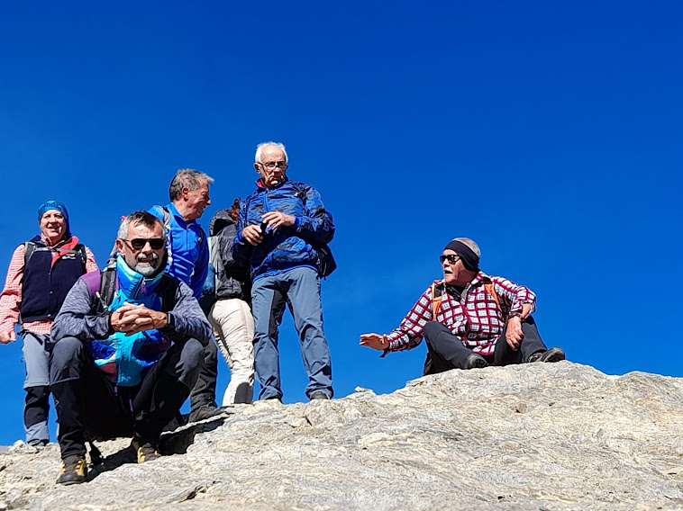 Con questa scusa i miei soci odierni innestano subito marce alte perché “devono scaldarsi” e l’altimetro mi dice che stanno salendo a 600 metri all’ora, che, per la montagna non agonistica, è come la velocità in circuito di Hamilton nelle prove libere. Per quelli appena normali, come me, questa andatura non va bene fino alla vetta: meglio lasciarli andare. Per fortuna ci pensa la giovane badante a far ricompattare il gruppo.