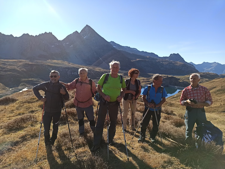 Le previsioni meteo finalmente non ci tradiscono e la giornata è di quelle rare. Cielo limpido grazie ad un fresco venticello da nord e vedremo le prime nuvole, lontane all’orizzonte, solo nel pomeriggio. L’età media odierna del gruppo è mantenuta leggermente sotto i settant’anni dalla giovane e forte badante. A Riale, 1731, siamo di pochissimi gradi sopra lo zero in questo ultimo giorno di settembre.