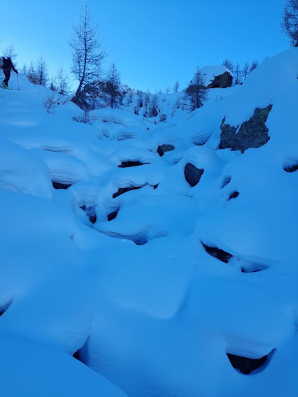 SEMPIONE- 27-02-2022-- C'è neve a sufficienza soltanto sopra i duemila metri, ma aldilà del Sempione. E poi il vento seguito alla prima nevicata decente dei giorni scorsi ha “spelato” il terreno, provocando anche accumuli instabili che consigliano grande prudenza. Andiamo quindi nel paradiso di Rothwald senza una meta ben precisa.