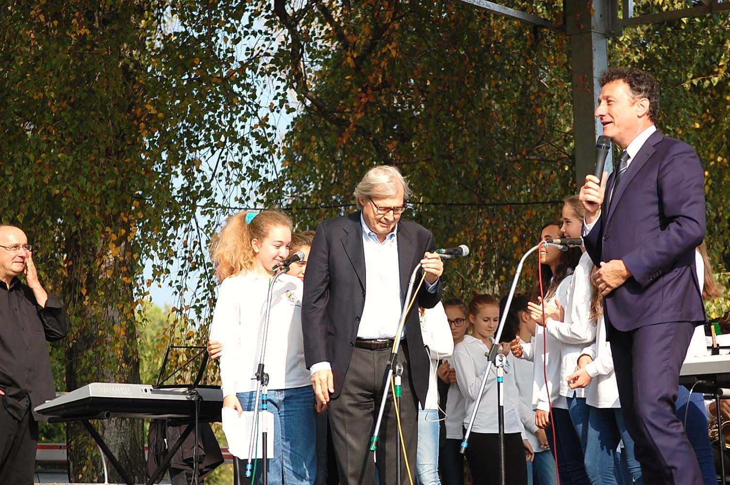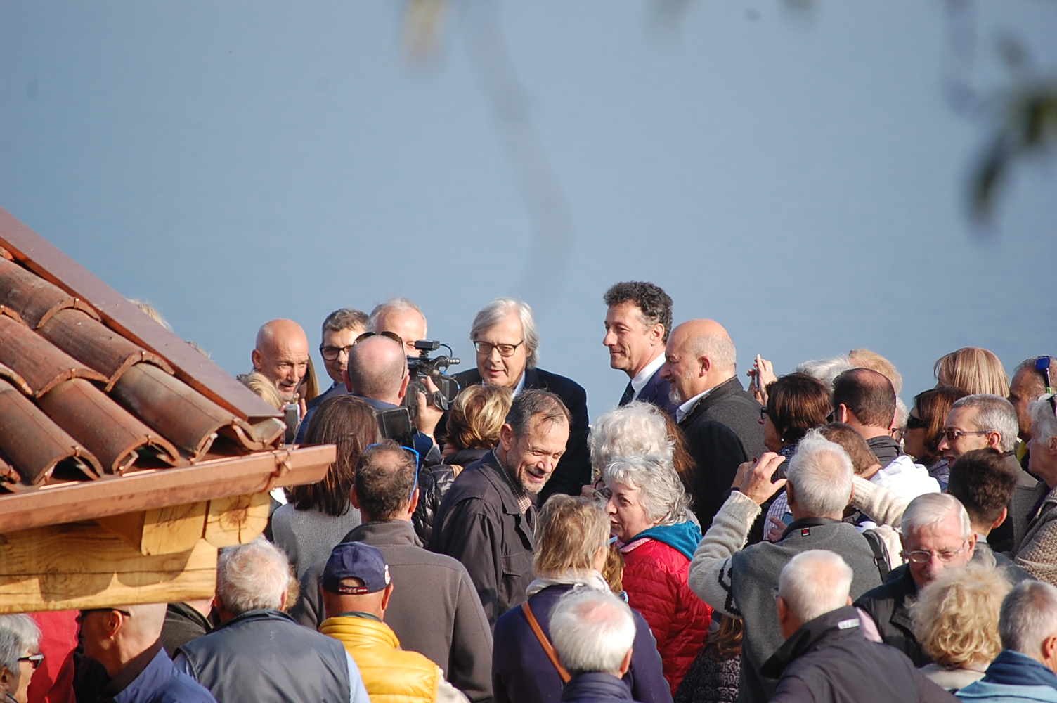 sono una terra santa dove sono accadute e potranno accadere cose importanti se si continuerà ad operare con fede, speranza e intelligenza” con questo richiamo alle radici cristiane del luogo che hanno determinato il trionfo della cultura sfociato appunto nel recupero della Torre Mozza, il professor Vittorio Sgarbi ha concluso il suo intervento in occasione della presentazione dei lavori di restauro della struttura, venerdì 20 ottobre. Un progetto realizzato grazie al contributo della Fondazione Cariplo e dell’impegno della famiglia Borromeo, che ha riportato al suo splendore la torre regalando alla città un affaccio spettacolare e privilegiato dopo oltre 200 anni di abbandono e devastazione. “Un tassello della rinascita della città che si pone anche come un intento di recupero del nostro passato, utile per comprendere il futuro – così il sindaco Alberto Gusmeroli – il tutto, in un momento positivo per la città, dove oltre agli interventi sostenuti dall’Amministrazione per la rivalorizzazione, si stanno moltiplicando anche quelli dei privati che contribuiscono senz’altro a dare un nuovo volto a diversi edifici in decadimento a beneficio della visione di tutti”. Sgarbi, che già durante l’estate aveva visitato la città in occasione della sua ‘lectio magistralis’ ai piedi dell’arco di Palmira, ha accolto l’invito per l’inaugurazione rivoltogli del primo cittadino di cui non ha fatto mistero di condividere l’intraprendenza e il credo nella bellezza e nel recupero dei beni artistici-culturali tanto da rinnovare l'idea di portare prossimamente ad Arona una grande mostra sul Seicento lombardo, incentrata sul Morazzone di cui alcune tele impreziosiscono il battistero e la cappella dell’Addolorata in Collegiata. Hanno fatto da cornice all’evento le note dei ragazzi del coro dell’IC Giovanni XXIII, diretto dal maestro Marino Mora e il pomeriggio si è concluso con la distribuzione delle monete di cioccolato “coniate” da Laica per l’occasione. (A.M.)