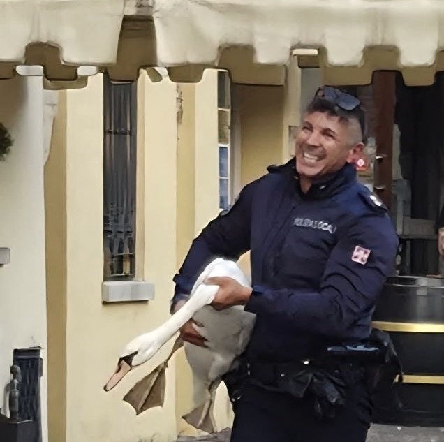 ARONA - 26-03-2026 --Un cigno รจ salvato dai vigili di