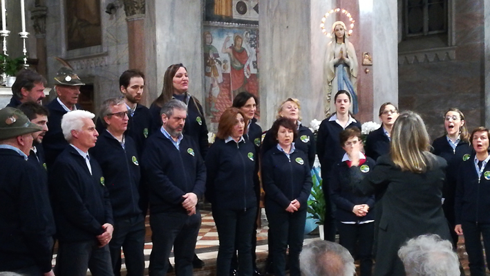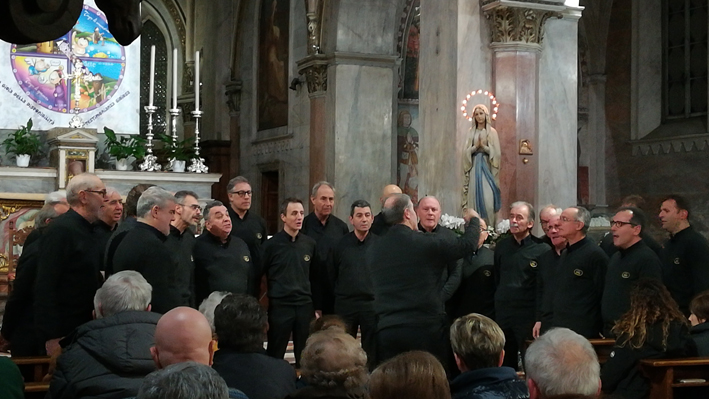 per la tradizionale rassegna di cori alpini e popolari pre natalizi che sabato 9 dicembre ha gremito la Collegiata di Maria Bambina. Una serata molto partecipata e particolare che ha introdotto il numeroso pubblico presente nell'atmosfera natalizia, ravvivando anche il ricordo di grandi persone; l’evento è stato, infatti, dedicato alla memoria dell'Alpino Roberto Cavallero prematuramente scomparso lo scorso mese di settembre. Una ventina i brani proposti dal coro La Rocca di Arona diretto da Mariangela Mascazzini e dai due cori ospiti: il coro Val Tinella di Gavirate (VA) diretto eccezionalmente dal vice maestro Alessandro Montoli e il Coro Ana Rocce Nere di Rossiglione (GE) diretto da Giancarlo Olivé. Dopo il canto di benvenuto, l’Ave Maria di Bepi De Marzi, eseguito dai tre cori insieme, il coro La Rocca ha dedicato due brani al compianto Cavallero il cui cappello, dalle mani del capogruppo aronese Giuseppe Mazzeo, ha trovato posto sul pulpito della chiesa: “Un modo per ricordare l'uomo semplice e generoso che Roberto è stato e perpetrare il grande e valido ricordo che ha lasciato in tutti noi” queste le parole a lui rivolte. Gli alpini hanno ricordato anche altre due indimenticate penne nere andate avanti: Gianfranco Diaz e Mario Landini. La serata si è conclusa con vin brulé e panettone offerti dal gruppo Alpini di Arona e con l'estrazione della sottoscrizione a premi abbinata alla rassegna. (A. M.)