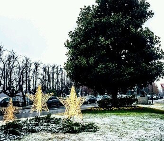 stagionale ha regalato un aspetto particolare alla città. La spruzzata di ieri e di oggi ha reso l'ambiente ancor più natalizio. Ecco due foto by day e by night.