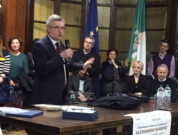 ha partecipato ieri sera, martedì 27 marzo, alla serata di premiazione con un riconoscimento alla carriera dello studioso e saggista Alessandro Barbero, nell'aula magna del Comune di Arona. Il premio è stato assegnato dal Circolo Culturale "Gian Vincenzo Omodei Zorini", presieduto da Ornella Bertoldini. Presente anche l'assessore Chiara Autunno. Barbero, studioso di storia medievale all'Upo di Vercelli, ha poi presentato il suo ultimo libro "Caporetto".