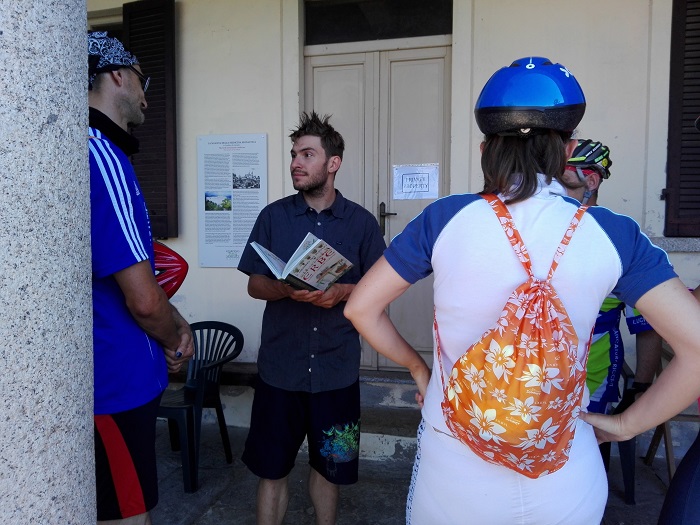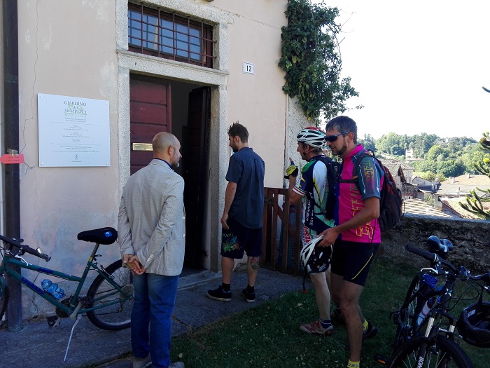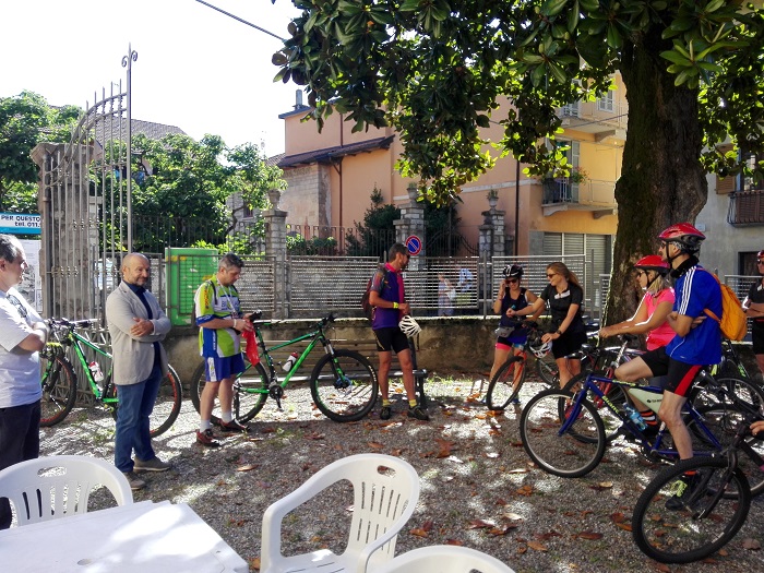 La manifestazione è iniziata con i classici saluti d’apertura: Massimiliano Curioni per Bilake, Fabio Valeggia amante della mtb e autore di numerose pubblicazioni di storia locale e di libri che guidano alla scoperta del territorio intorno al Lago d’Orta, Andrea Del Duca direttore dell’Ecomuseo e Danilo Alunno in rappresentanza dell’amministrazione comunale di Miasino.