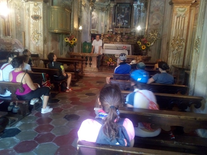 Monica Corbellini di AmenoTurismo ha spiegato ai biker le caratteristiche del parco neogotico che si sviluppa di fronte a Palazzo Tornielli, Andrea Del Duca a Corconio ha parlato della piccola Chiesa di Santo Stefano che al suo interno ospita delle preziosità molto interessanti, e Massimiliano Curioni a Legro ha palesato le peculiarità della frazione ortese famosa per i suoi “muri dipinti”.
