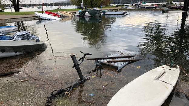 che testimoniano il livello del lago Maggiore ad Arona, nel pomeriggio di oggi, mercoledì 7 ottobre. Come già detto in precedenza, la situazione viene costantemente monitorata