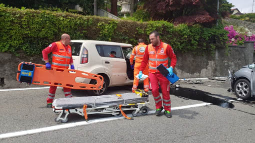coinvolte nel frontale avvenuto a Meina. Il personale del 118 è intervenuto per i soccorsi degli automobilisti coinvolti. Il sinistro si è verificato nei presis del Meina Beach. Le foto. Inizialmente sembrava si trattasse di un incidente molto grave, ma fortunatamente non è stato così. I conducenti sono stati trasferiti all'ospedale di Borgomanero, uno in codice giallo ed uno in codice verde. I vigili del fuoco di Arona si sono occupati della messa in sicurezza dell'area. Le foto.