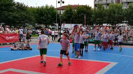ARONA 20-06-2019- Sport, spettacolo, energia hanno tenuto con il fiato sospeso il numeroso pubblico intervenuto ieri sera in Largo Alpini per il primo Da Move 3x3 Invitational. Il torneo, organizzato dai Da Move con il supporto della realtà locale Duemilae2o, ha visto sfidarsi sulle rive del Lago Maggiore otto tra le migliori squadre di basket 3 contro 3 del nord Italia. I team, sponsorizzati da altrettanti bar e locali della cittadina, si sono sfidati in due gironi all’italiana, dai quali sono uscite quattro semifinaliste.