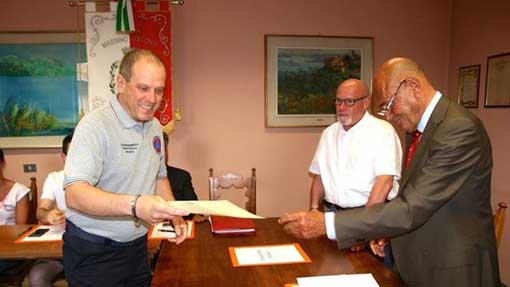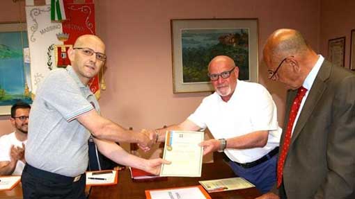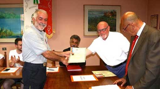 MASSINO VISCONTI -20-06-2019 - Attestati e medaglie di riconoscimento per quattro volontari del Gruppo Comunale di Protezione Civile di Massino Visconti da parte della Regione Piemonte: sono stati consegnati ieri, mercoledì 19 giugno, al termine del primo consiglio comunale dal sindaco Antonio Airoldi e dal consigliere delegato Gabriele Ragazzoni. I premiati sono stati: Simona Manco, Fabio Ragazzoni, Fabrizio Ragazzoni e Gianfranco Ragazzoni. I riconoscimenti sono stati assegnati dalla Regione "a testimonianza dell'opera e dell'impegno prestati nello svolgimento delle attività di protezione civile ed antincendio boschivo connesse alla gestione delle emergenze regionali e nazionali occorse negli anni 2014-2018": così recita la motivazione sulle pergamene recanti la firme del ex presidente Sergio Chiamparino e del ex assessore alla protezione civile Alberto Valmaggia. I quattro volontari hanno attivamente partecipato con il coordinamento territoriale del volontariato di Protezione Civile di Novara alla gestione del Campo Savelli di Norcia (terremoto Umbria 2016) ed a Moncalieri (alluvione nel Torinese 2016).