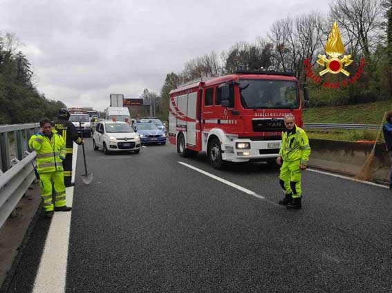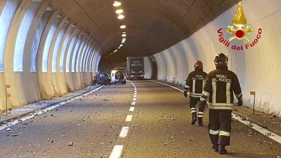 dell'incidente stradale avvenuto questa mattina nella galleria Sant'Igino sulla A26 a Gattico Veruno in direzione Genova. Un mezzo pesante ha perso un carico di tondini di ferro. Coinvolte 40 auto e 4 mezzi pesanti.