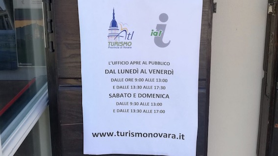 per l'ATL, l' Azienda di Turismo Locale, che da pochi giorni si è trasferita nella corte del Castello di Novara. Ambiente storico, arredato con grande gusto, entrando ci si sente avvolti da storia, realtà locale e novaresità a tutto tondo. Un'altra ala del Castello che prende vita e che arricchisce il patrimonio culturale del luogo. E aperta sette giorni su sette.