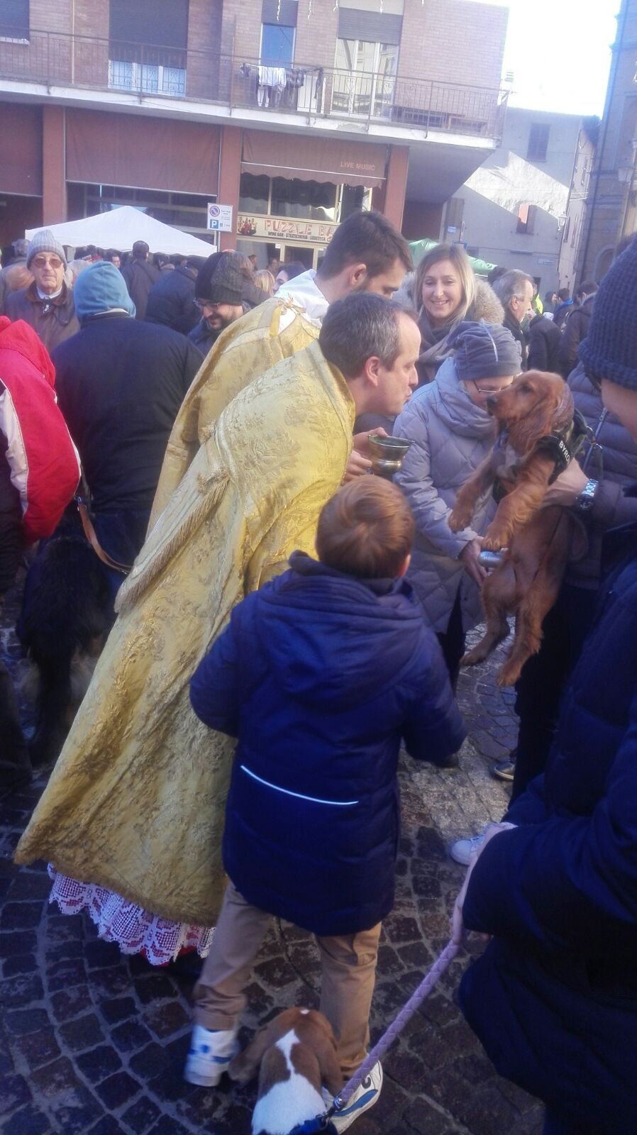 CASTELLETTO TICINO-16-01-2017- Animali in piazza per la tradizionale benedizione di S. Antonio, patrono degli animali. Ad attenderli domenica mattina, il parroco Don Fabrizio Corno. Cani in maggioranza ma anche un cavallo, una coppia di canarini in gabbia, dei criceti. Con loro la statua di S. Antonio, santo patrono di Castelletto Ticino e protettore di tutti gli animali, portata in processione sulla piazza Matteotti. Il sindaco Matteo Besozzi spiega: “ E’una tradizione che si rinnova per il nostro Santo Patrono. In passato giungevano molti più animali in piazza, ora in gran parte sono animali da affezione, ma è sempre un avvenimento gradito e sentito dalla popolazione.” Popolazione che si è stretta intorno al parroco che ha benedetto ad uno ad uno gli animali presenti, tra cui i cani dell’Associazione Nazionale Carabinieri di Giussano in provincia di Milano guidati da Marco Valsecchi che ricorda : “ Alcuni mesi fa i nostri cani sono intervenuti per le ricerche di un anziano scomparso nei boschi. Grazie ad uno dei nostri elementi migliori, Pepe, l’uomo è stato ritrovato. Ora Pepe con Jack, Artu’, Luna, Boss, Shake, Ice e Yatta ha ricevuto l’annuale benedizione”.